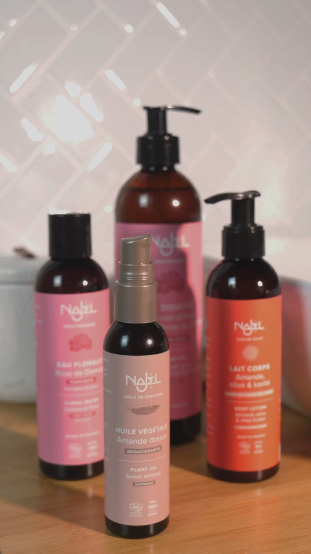 Amande douce : l’huile d’amande douce adoucit et nourrit. Elle apaise les peaux sensibles et aide à maintenir souplesse et confort du visage et du corps. Pour les cheveux, elle apporte brillance, limite le dessèchement et facilite le démêlage.